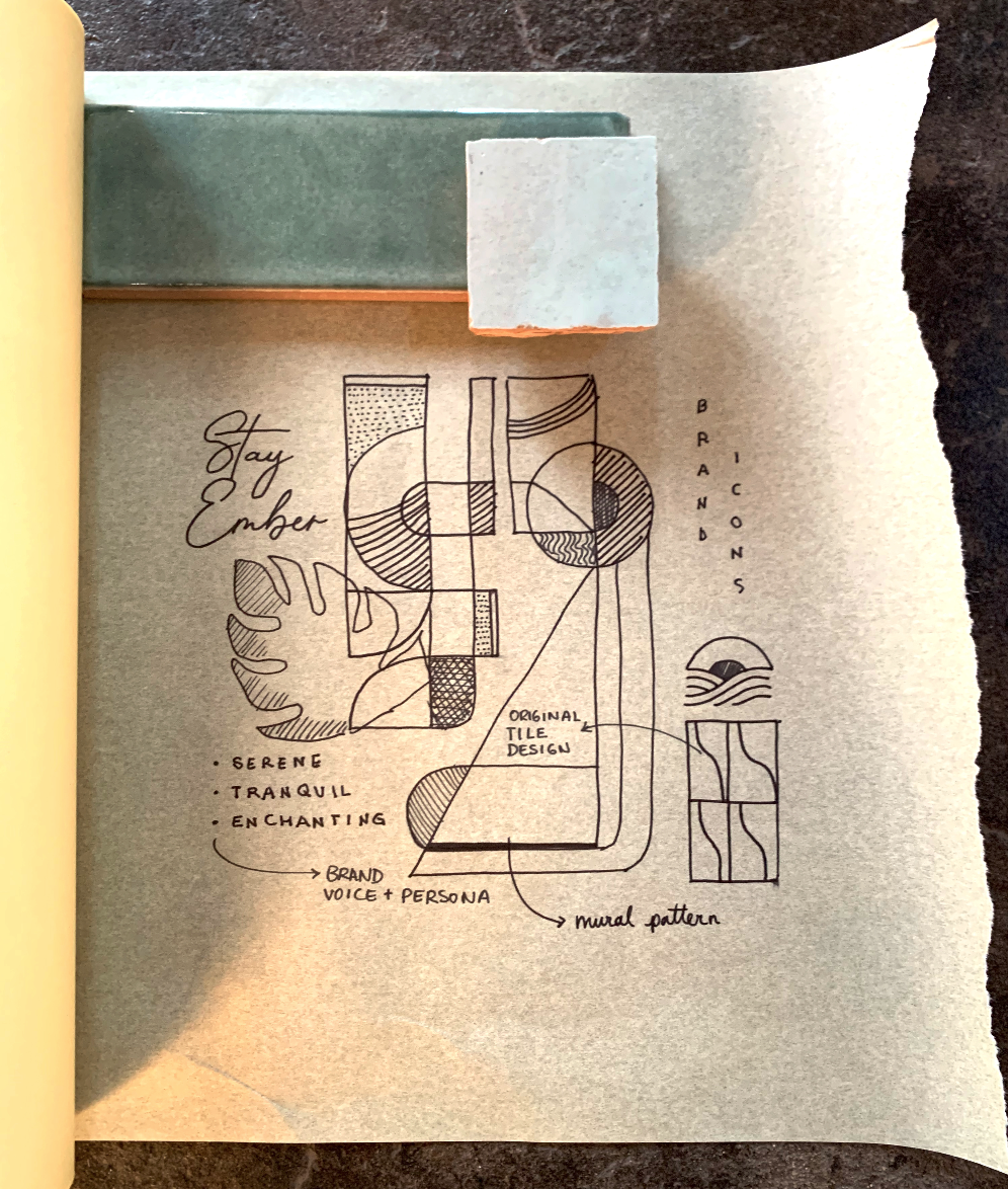 The brand identity uses a soft, airy color palette to create a tranquil, welcoming experience. As part of the Stay Ember brand system, custom abstract murals were designed and hand-painted throughout the space, adding visual interest while maintaining a cohesive, understated aesthetic.